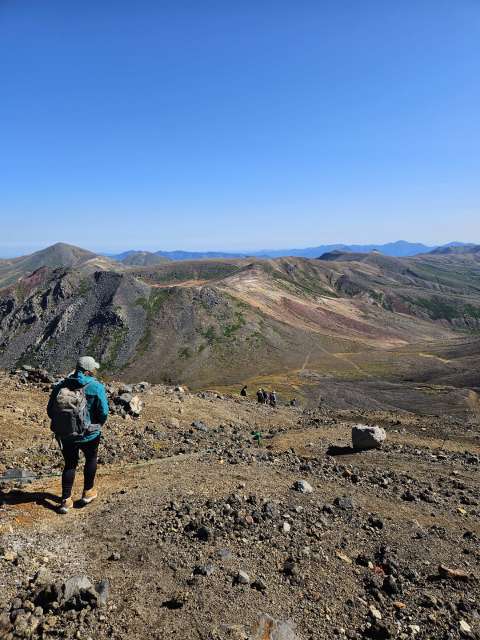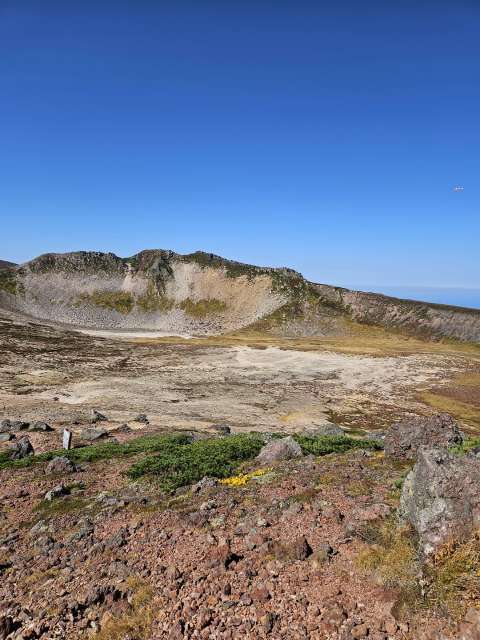 We made it to the summit. Enjoyed our summit drinks and envied other hikes snacking on Jo’s favorite, inari. We didn’t have a nailed down plan when we got up there, but given how good we felt, we decided to continue the trek to do a loop back down to the station. After a steep descent off the crater, we continued along the ridge hitting a few more peaks. It was a beautiful hike, with awesome views of craters and Japanese tundra, some of which had started to turn autumn colors.