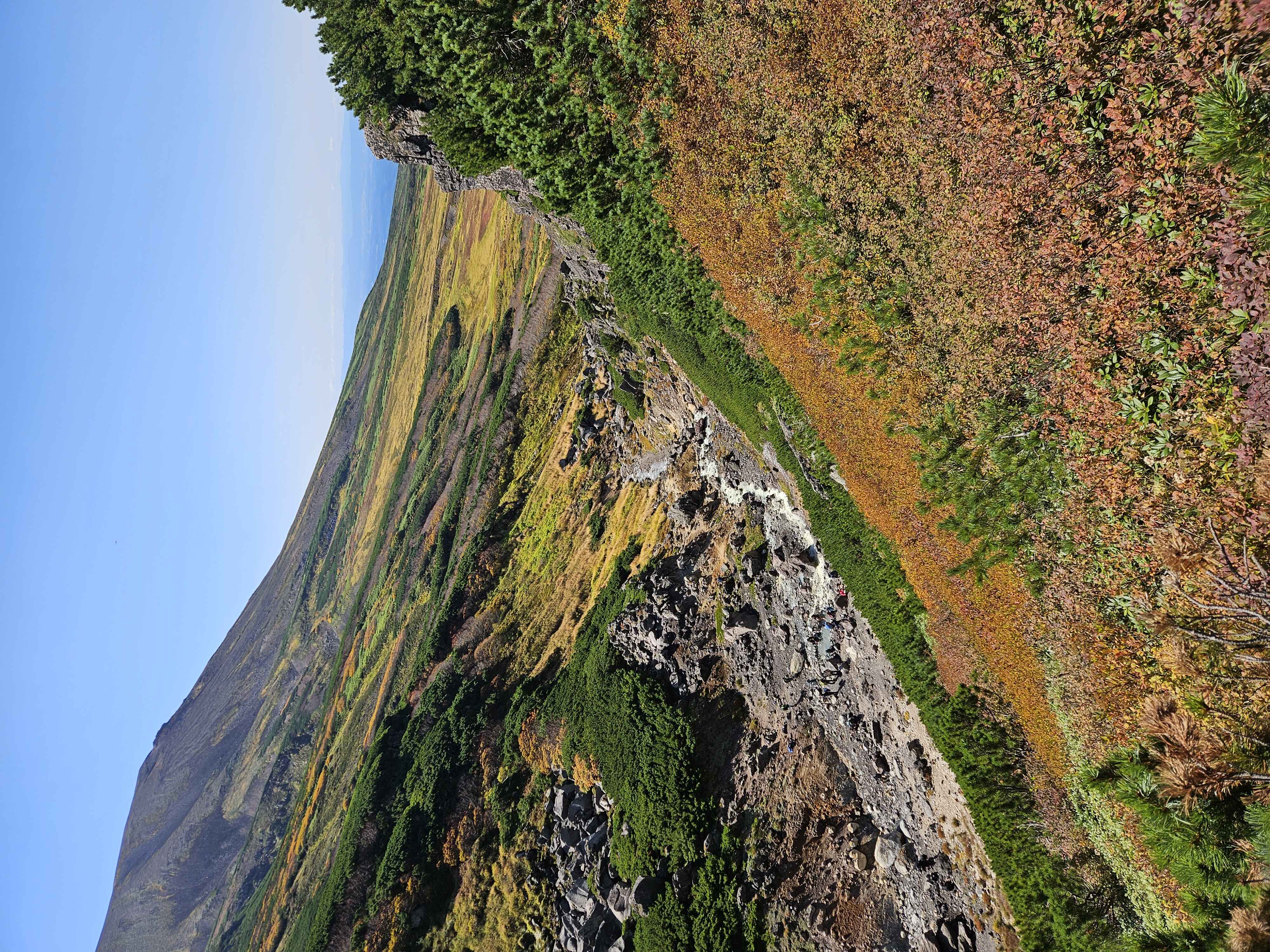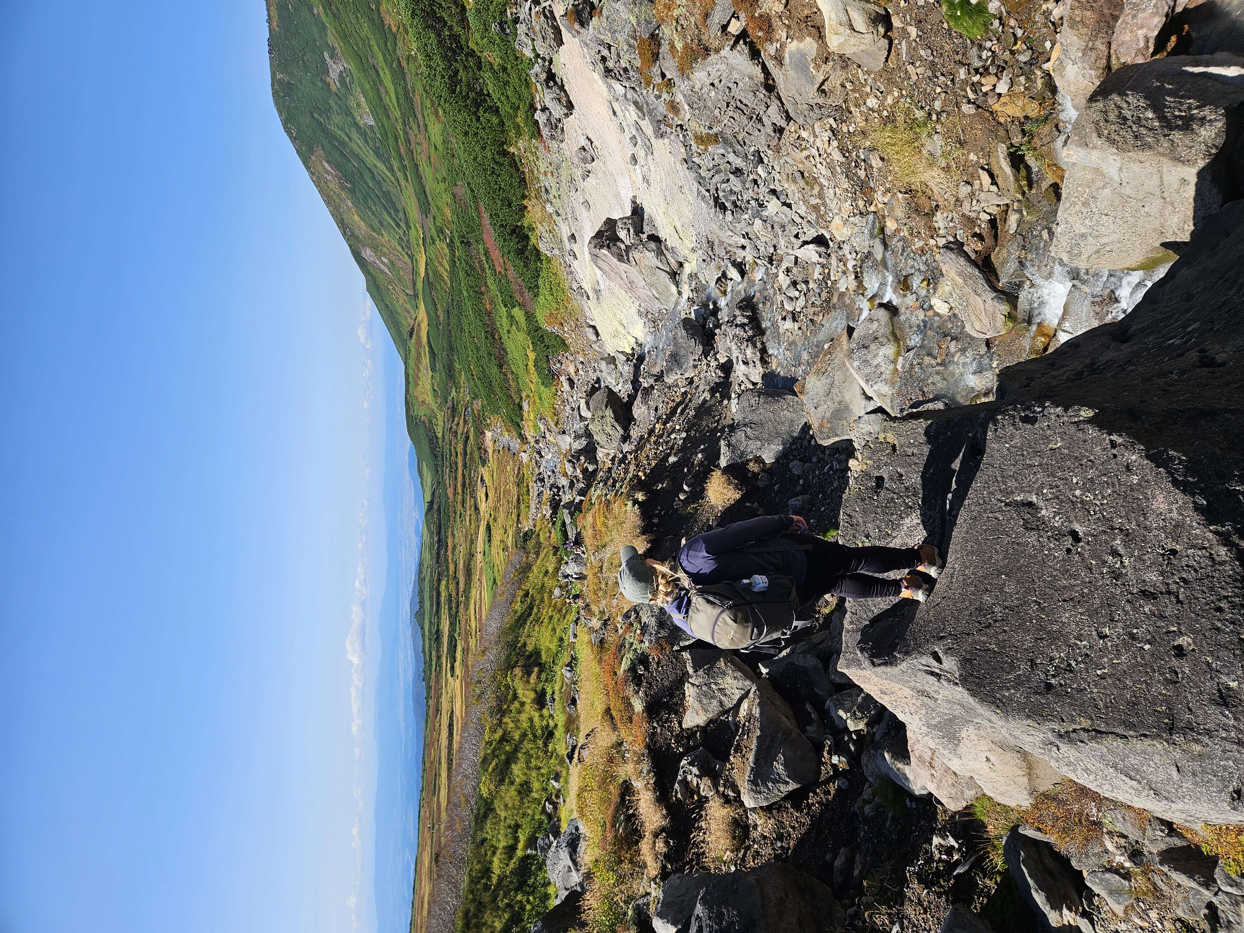 We made it to the summit. Enjoyed our summit drinks and envied other hikes snacking on Jo’s favorite, inari. We didn’t have a nailed down plan when we got up there, but given how good we felt, we decided to continue the trek to do a loop back down to the station. After a steep descent off the crater, we continued along the ridge hitting a few more peaks. It was a beautiful hike, with awesome views of craters and Japanese tundra, some of which had started to turn autumn colors.