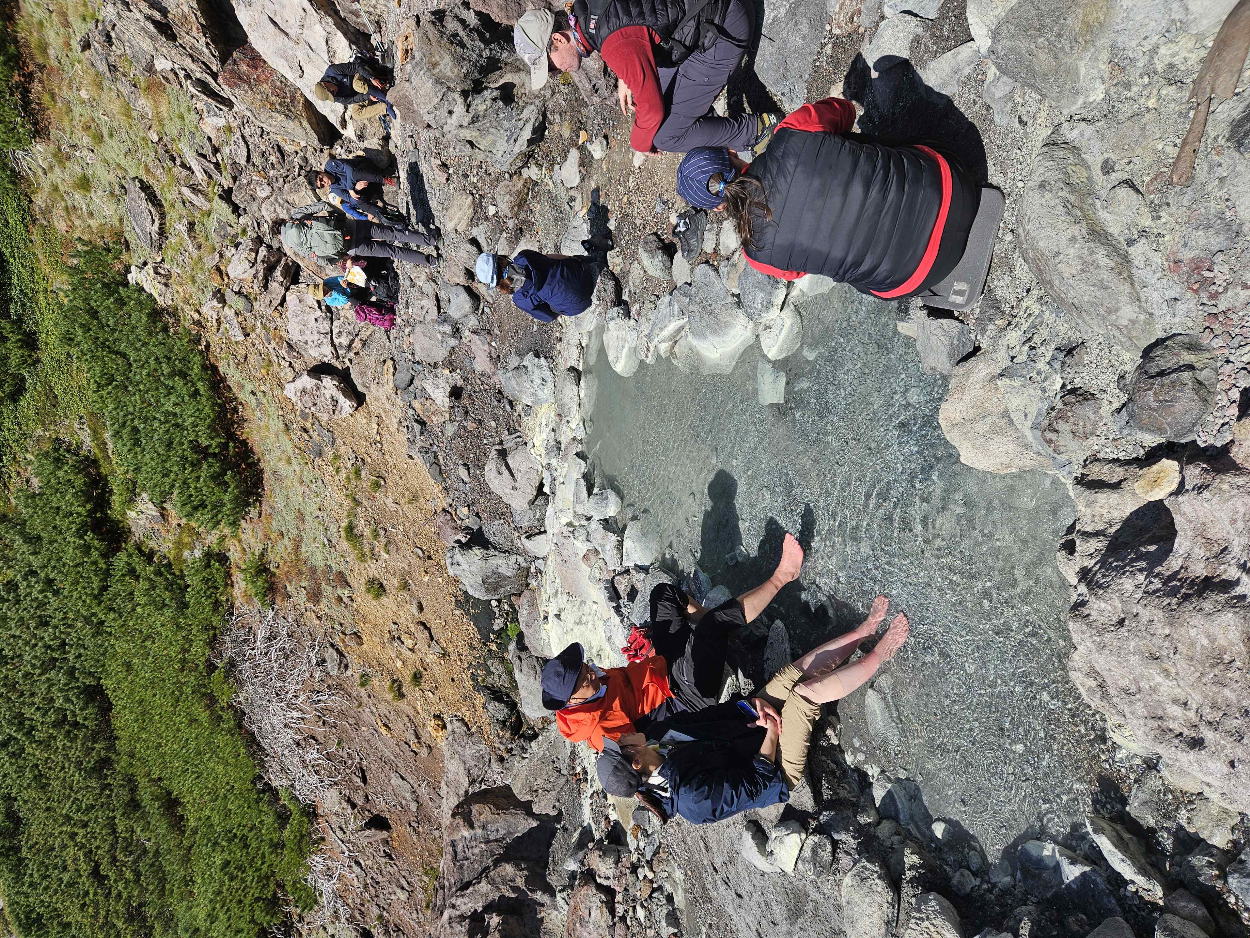 We slept in the nearest town we could and got to the base first thing in the morning. I can’t remember how much we paid for the gondola but it was a nice luxury to have gain some easy elevation. It’s a straight shot to the summit from the gondola station, we joined the train of other tourists, put our heads down and marched our way up there. It was cool to see the steam from the thermal vents on the way up. The whole national park, and region in general are all volcanic: steamy vents, hot springs, hot pots.