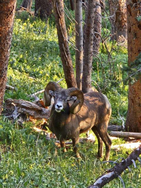 The way down I stumbled on some bighorn sheep in the forest. Never seen them below treeline before.