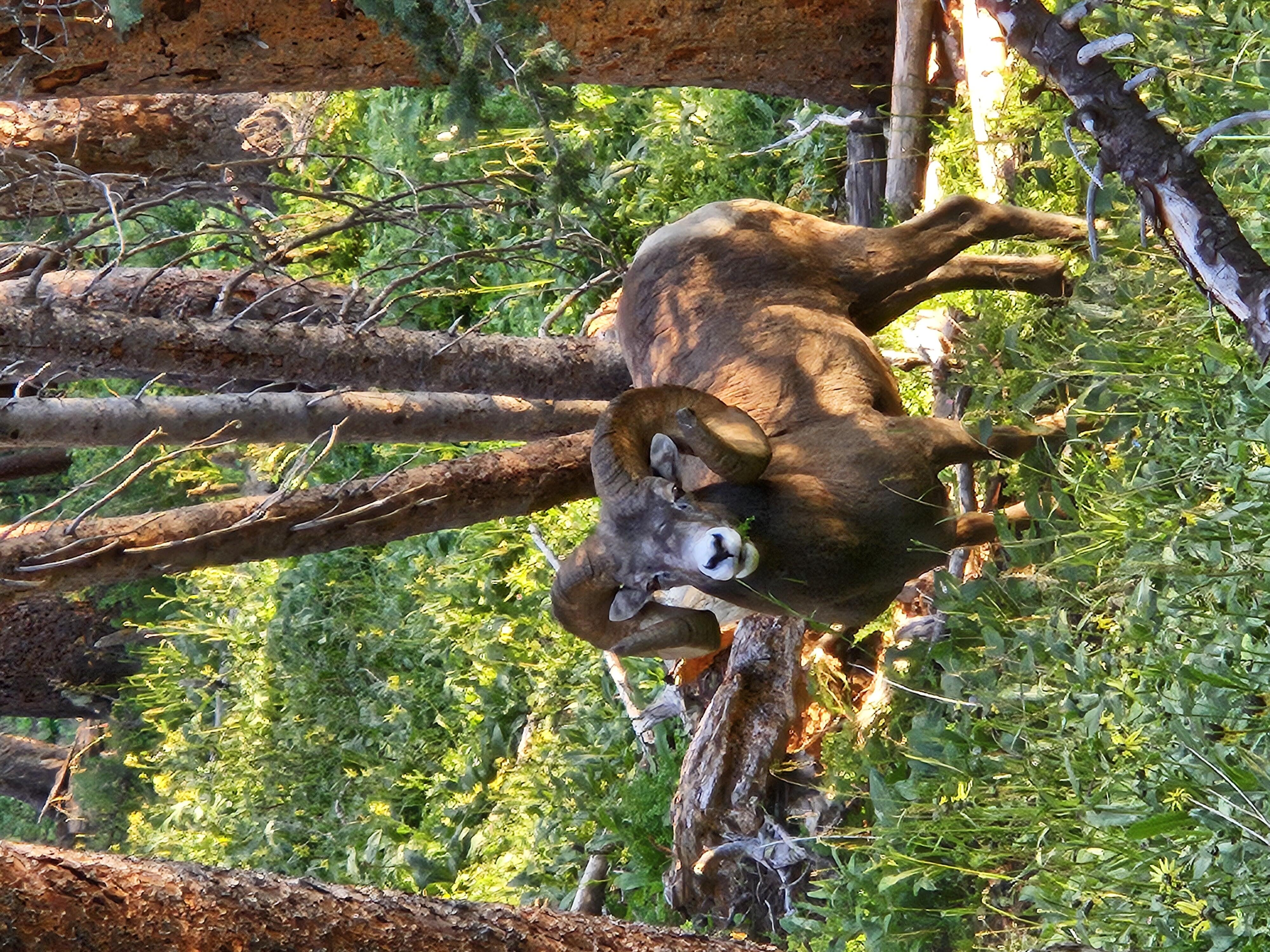 The way down I stumbled on some bighorn sheep in the forest. Never seen them below treeline before.